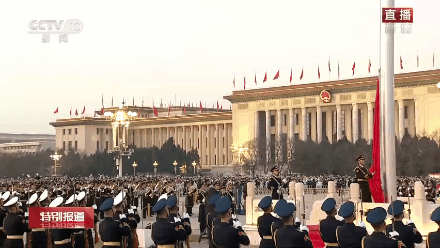 伴随着雄壮的国歌 和东方一缕朝霞 我们共同见证了 五星红旗冉冉升起的庄严时刻 直播里还有团团出现 这个彩蛋你发现了吗?