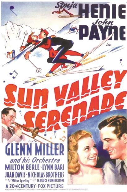 传奇奥运冠军索尼娅·海妮将花样滑冰融入到好莱坞歌舞片中。图为1941年出品,由索尼娅·海妮主演的好莱坞电影《太阳谷小夜曲》海报