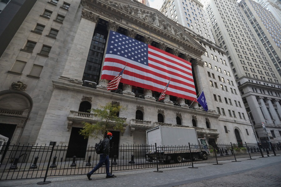 2020年10月30日,行人从美国纽约证券交易所前走过。(新华社记者王迎摄)