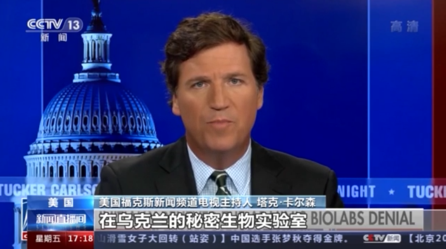 当地时间10日,俄罗斯国防部公布了从乌克兰生物实验室人员那里获取的文件,揭露美国国防部资助开展在乌克兰境内的军事生物研究。对此,美国福克斯新闻频道电视主持人塔克·卡尔森10日指出,美国政府在乌克兰秘密生物实验室问题上撒谎,向美国民众隐瞒了支持这些实验室的真正目的。
