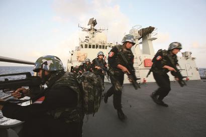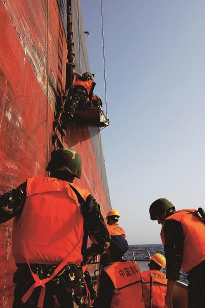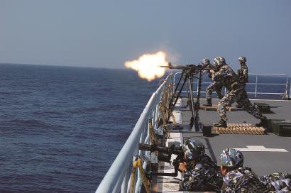 ![]() 特战队员在驾驶室观察 ![]() 攀绳梯到商船上随船护卫 ![]() 特战队员在驱逐舰前甲板进行演练 ![]() 特战队员用红外夜视仪观察海面 ![]() 射击训练 ◆肖勇利 目前,我海军第40批护航编队在亚丁湾、索马里海域执勤。和之前一样,随舰出征的官兵里,总有头戴黑色反恐帽,眼戴黑色墨镜,手持黑色步枪,身穿黑色反恐服,脚穿黑色特战靴的人员。他们就是海军护航编队里的“黑色方阵”——海军特战分队。护航期间,他们全时段警戒值班,哪里有情况,哪里就有他们迅捷的身影。本文作者曾随我海军首批护航编队于2009年1月6日抵达亚丁湾任务区,与第一批海军特战分队朝夕相处。他们所经历的点点滴滴,至今仍在上演。 警告射击时刻 2009年3月2日,马士基大西洋轮等成为首批经我总参谋部批准护送的外国商船,我编队海口舰与武汉舰对其伴随护航。当日中午,烈日把海口舰前甲板晒得滚烫,战备值班许久的特战队员林楠摘下黑色墨镜,用手掐掐眼皮,戴上墨镜后,拿望远镜瞭望四周,舰桥前方的摄像头将其一举一动传回北京海军作战大厅。对特战队员来说,清晨、中午和黄昏是最让人疲劳、海盗最易出没的时段。 半个小时后,林楠发现左前方有片模糊的影子在移动。他迅速目视观察,发现9艘快艇正向编队接近。 “舰指前段,左舷40度发现9个目标。” “继续观察。” 舰桥里,导航兵报告:目标距离3.3海里,最大航速21节。紧接着,甚高频电台里传来被护航的马士基大西洋轮报告“发现目标”。 舰上立即发布直升机一等值班部署,第三特战小队指挥员唐勃率领特战队员朱洪刚、黄磊,100秒内全副武装登机。两分钟后,舰上发布一级反海盗部署。第一、二特战小队火速冲向战位,立即进入战斗状态。 可疑快艇离商船越来越近,信号班发射3发红色信号弹,警告无效后又发射6发,快艇仍在接近。当最前头3艘快艇越过海口舰舰艏时,值班指挥员邹福全命令右舷机枪拦阻射击。“哒哒哒……”机枪手刘爽朝快艇前方海域连续射击,快艇当即停车右转。随后,刘爽数了数落在身旁的弹壳——23个。 这一天,是我护航编队在亚丁湾、索马里海域,首次使用实弹对可疑船只拦阻射击,在我军护航史上具有标志性意义。 中国海军万岁 随船护卫是我编队护航的三种方式之一,也是专为特战队员设置的科目。2009年1月初,编队为来自上海的振华13轮、振华14轮等护航,首次安排两组特战队员赴振华13轮、振华14轮随船护卫。根据安排,由党培伟和谢增岭各率领一支配备4名骨干的小队,分别前往振华13轮和振华14轮。由于两船都有直升机起降平台,商船与编队会合后,直升机搭载两组特战小队降落在了商船上。 为迎接祖国海军护航,振华13轮船员专门在甲板上打出“向人民子弟兵致敬”的标语,并画了一幅同比例的国旗图案,让特战队员深受感动。党培伟听取船长介绍后,立即对船体结构进行检查,最后根据船体布局和海盗易攀爬部位,白天设置两组警戒和3个火力点,同时要求船上雷达值班人员加强观察,对反海盗部署时船员如何配合都做了安排。中午12点,特战队员李红进和乔道柱开始了第一班警戒。烈日下,李红进头戴钢盔,身穿防弹衣,手持步枪,腰间别着对讲机,不到一小时,全身已经湿透。但他清楚,海盗船颠簸在浪花里极难辨别,只要看到较大的浪花,他都要仔细辨别一番。 根据要求,商船接受护航后,每小时要向编队指挥部报告一次情况,发现目标及时报告。为了便于应急处理,编指将随船护卫的枪弹使用权下放给现场特战小队指挥员,可边实施边请示报告。特战队员们的到来,给商船带来了安全,也给船员们带来了快乐。56岁的振华13轮轮机长摸了摸特战队员的枪,笑着说:“我当水手30多年来,全世界的海洋基本上跑遍了。我看过美国航母、法国驱逐舰,今天还是第一次在远离祖国的海域看见咱们的军舰和海军,真让人骄傲。” 经过特战队员40多个小时的随船护卫,振华13轮顺利抵达安全海域。临别时,船员们纷纷走到甲板上,站在“向人民子弟兵致敬”和国旗图案前,挥舞着手臂,高呼着“中国海军万岁”! 独立随船护卫 2009年3月1日上午9点,特战小队指挥员刘国立率领五名特战队员对中远公司的织女一号轮独立随船护卫。 独立随船护卫又是随船护卫的一种,这种方式通常源于两点,一是商船航速低,跟不上编队;二是仅有一艘船,且与下批被护商船相隔时间较长。织女一号就属于第一种情况,加上干舷不足3米高,容易遭海盗攀爬,特战小队上船后,特意加强了对商船较矮的前段和中段警戒,并在驾驶室两侧和前段各设立一个火力点。 下午6点多,天色渐暗。商船雷达发现左舷80度,有一个目标以20节高速接近。同时,在驾驶室左侧警戒值班的特战队员王天国也报告左舷发现快艇。20分钟后,快艇距商船1.5海里时,王天国奉命朝快艇方向打出两发闪光弹,快艇随即停车远离。 第二天上午9点,织女一号被特战小队护送至安全海域。临别时,船长贾中宝感慨地说:“一切海盗都是纸老虎!” 练就闪电速度 虽然护航是非战争军事行动,但也有流血危险。海盗拥有步枪等致命武器,并以群狼战术袭击过往商船甚至军舰。护航的特战队员既要独立完成任务,又要高效地团队配合。 此次护航携带的枪弹数量多,必须专人管理,但战斗编组中,队员“一个萝卜一个坑”,这意味着必须有一个人既要当枪弹管理员,又要当战斗员。队员卢济