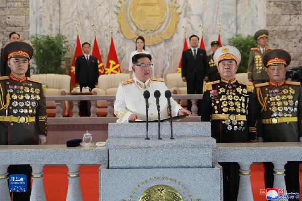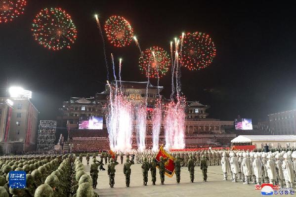 报道说,朝鲜劳动党总书记金正恩在阅兵式上发表讲话说,朝鲜决定继续以最快的速度发展本国的核武器,并且做好了随时使用核威慑的准备。他在发言中还表示,要为人民的幸福生活和国家的光荣与胜利而不懈努力。 在随后举行的阅兵式上,包括战术导弹部队、坦克部队和防空火炮部队等各军兵种的方阵高呼口号,迈着整齐的步伐列队走过广场,接受金正恩等朝鲜领导人的检阅。阅兵式结束前,一批无人机腾空而起,在广场上空施放的焰火照亮了夜空。 ![]()