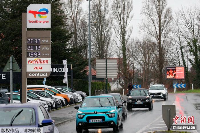资料图:俄乌冲突爆发后,欧洲油价持续上涨。图为3月3日,车辆经过法国西南部城市圣让-德吕兹的一处加油站。