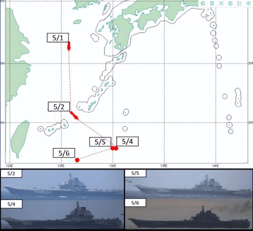 得,最近几天牵动亿万中国军迷心的辽宁舰行踪之谜,就此解开了。 ![]() 根据日本方面绘制的辽宁舰航迹,5月2日,日本自卫队在距长崎县男女群岛以西约350公里的东海海域发现辽宁舰航母编队向东南方向航行,该编队于当天晚些时候穿过宫古海峡,进入太平洋南下。 ![]() 随后,东出西太平洋的辽宁舰编队进行了一个“V”字航线,先向东南方向航行了约400公里,再掉头往西抵近台湾岛:在3日正午前后,辽宁舰编队出现在冲绳县冲大东岛西南约160公里的太平洋上;5日,辽宁舰编队移动到宫古岛东南方向约320公里附近海域;6日,辽宁舰航母编队出现在石垣岛南部170公里海域、台湾东部海域。 根据日本自卫队方面的观察,辽宁舰航母已经接连至少5天进行高强度的舰载战斗机起降训练,尤其是5月8日,从上午9时到晚上8时,辽宁舰全天实施舰载战斗机和直升机起降训练,其实战化训练的意味浓重。 从地图上看,辽宁舰近日基本就停留在台湾以东区域,此前引起台湾方面的广泛猜测。 ![]()