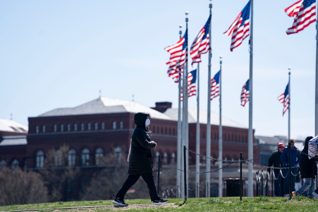 3月29日,行人走在美国首都华盛顿的国家广场。新华社记者刘杰摄