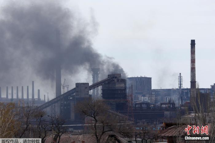 2022年4月21日,乌克兰马里乌波尔的亚速钢铁厂升起浓烟。