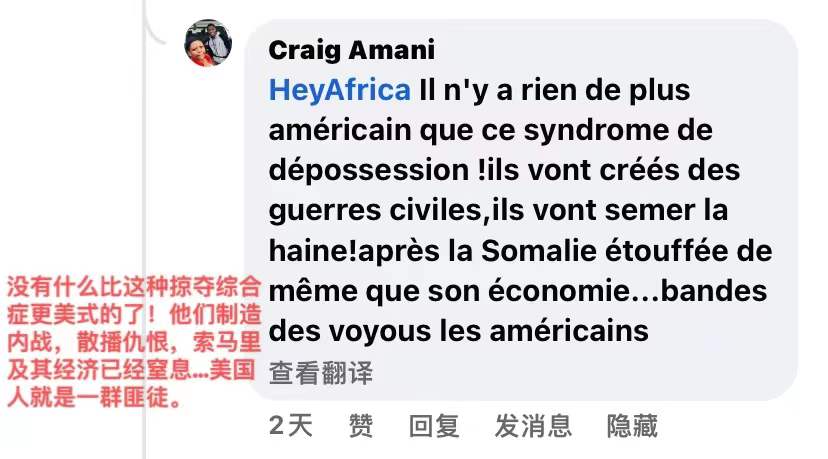还有非洲网友直言,“然而没有人对这场侵略说不,因为侵略索马里的是美国”。