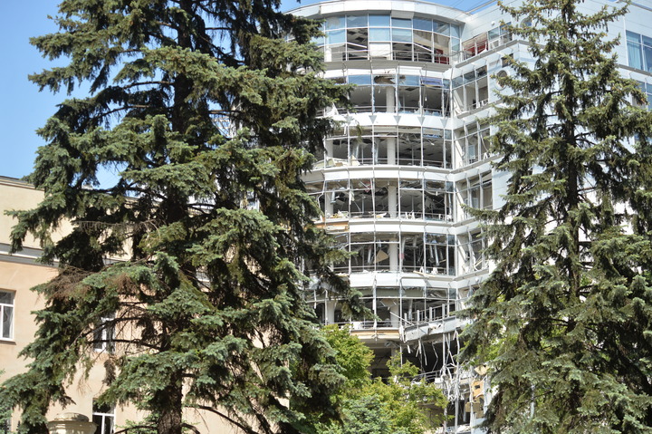 这是6月1日在乌克兰哈尔科夫市拍摄的被炸毁的楼房。新华社发(彼得·德鲁克摄)