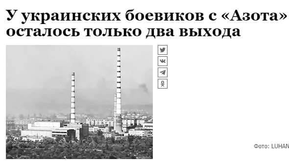 “他们是乌克兰最训练有素的部队之一。他们被派往那里,希望能守住顿巴斯最后的据点”,俄罗斯的军事专家描述了目前在北顿涅茨克化工厂“亚速特”正在发生的事情——乌克兰武装分子正试图在那里建立一个类似于亚速钢铁厂的堡垒。 “亚速特”是乌克兰最大的化工厂之一,用于生产肥料、氨、硝酸铵、乙酸和甲醇。在面积上看,这家工厂占据了北顿涅茨克的不到一半(42.1平方公里)。在苏联的鼎盛时期,有一万人在“亚速特”化工厂工作。那里除了有众多的车间、综合设施、食堂外,还建造了防空洞。 ![]()