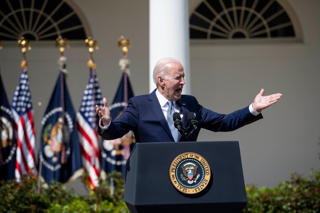 2022年4月11日,美国总统拜登在华盛顿白宫发表讲话。新华社记者刘杰摄
