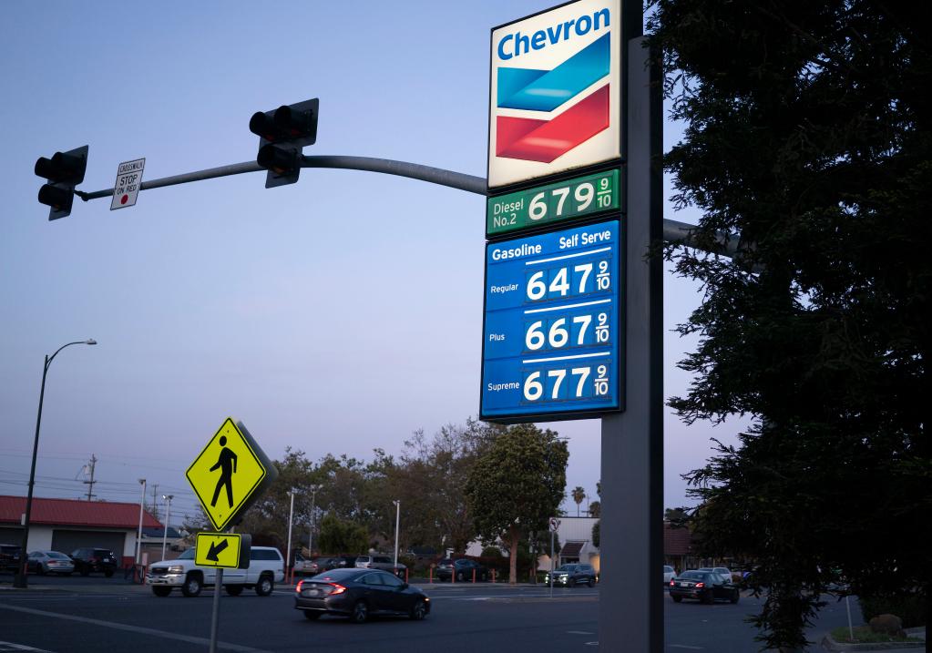 这是5月17日在美国加利福尼亚州米尔布雷拍摄的一家加油站的油价牌。新华社发(李建国摄)
