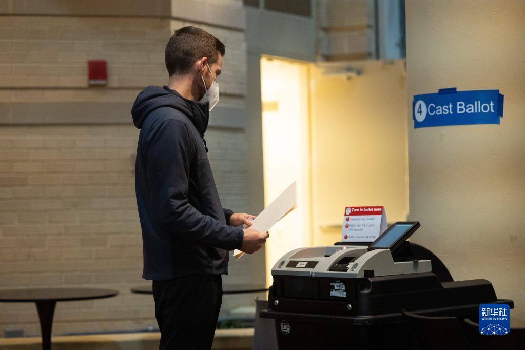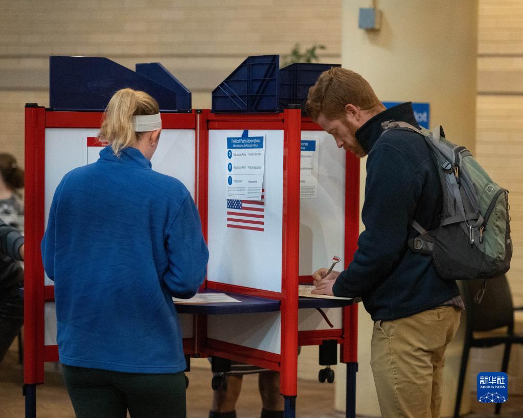 11月8日,选民在美国弗吉尼亚州阿灵顿的一处投票点参加中期选举投票。新华社记者 刘杰 摄