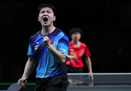 5月28日,樊振东在比赛中庆祝得分。新华社记者 王东震 摄