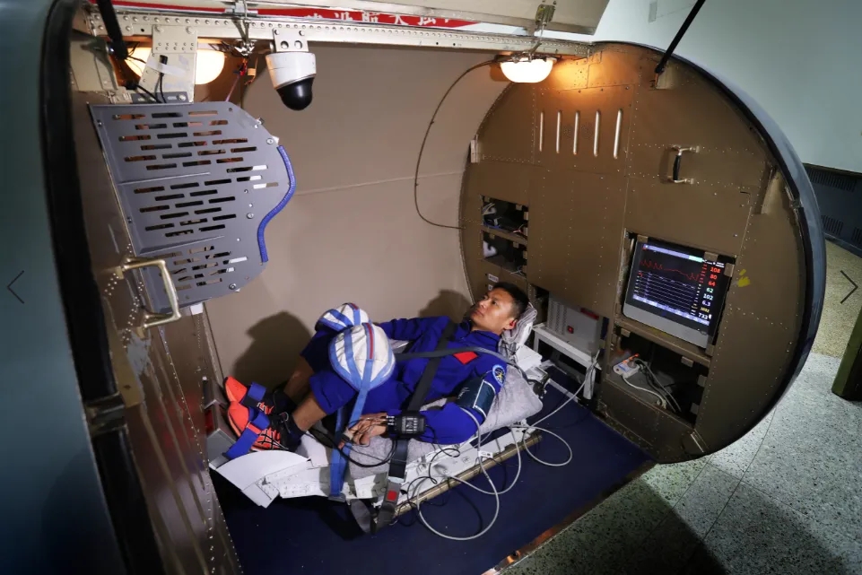 大约2500名候选对象,最终只有18人成为预备航天员。桂海潮从中脱颖而出,成为4名载荷专家之一,也是唯一来自高校的载荷专家。 在北航,同事和学生们都知道桂海潮身体素质好,有锻炼习惯,经常在体育场跑步。然而,与空军飞行员出身的航天员相比,桂海潮的体能素质与航天技能还是稍显薄弱。 就拿离心机来说,虽然桂海潮通过了选拔阶段的6G过载,但入队后,所有训练标准都是8G。第一次训练时,他感觉胸腹部被牢牢压住,每一次呼吸,胸膛仿佛都在撕扯。 怎么办?桂海潮说:“干就完了!”每次训练结束,他都要向有经验的师兄们请教、复盘。总结自己成绩不佳的症结后,他再安排加练,进行针对性的修正。 ![]()
