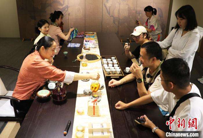 茶艺师在技术官员村文化小屋内以茶会友。中新社记者 钱晨菲 摄