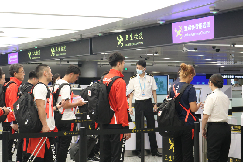 亚运人员通过海关亚运会专用通道抵杭入境。王轶星摄