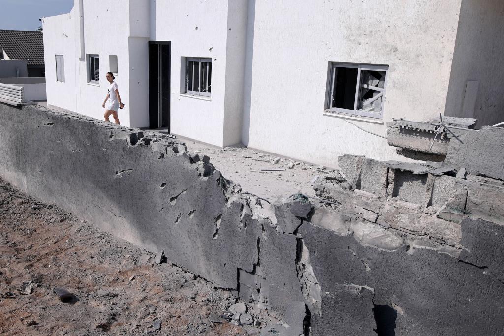 这是10月11日在以色列阿什凯隆拍摄的遭加沙火箭弹袭击的围墙。 新华社发(伊兰·阿萨亚格摄/基尼图片社)