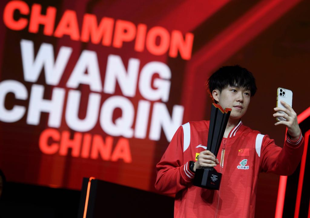 1月5日,男单冠军王楚钦在颁奖仪式上拍照。新华社发(尼库摄)