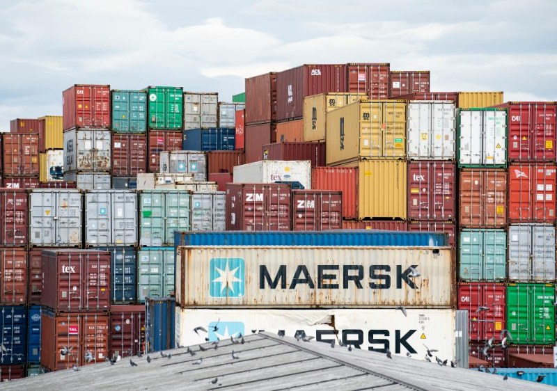 这是2021年10月26日在美国马里兰州巴尔的摩市港口拍摄的货运集装箱。新华社记者刘杰摄