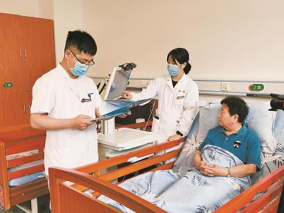 正在进行日常查房的石晓臣(左一)。 资料图片