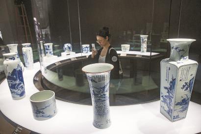 陶瓷展展出的青花瓷器。 均 本报记者 赖鑫琳 摄