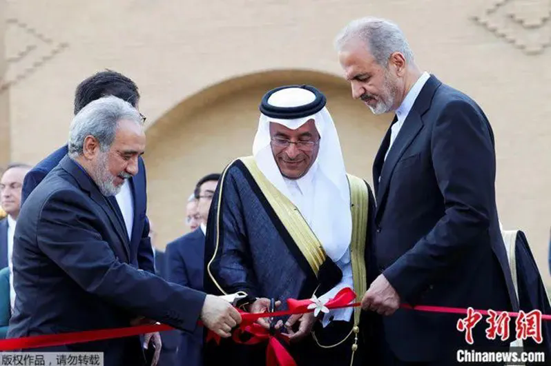 2023年6月,伊朗副外长比格德利、沙特副外交大臣优素福等在沙特阿拉伯利雅得出席伊朗驻沙特阿拉伯大使馆复馆仪式。
