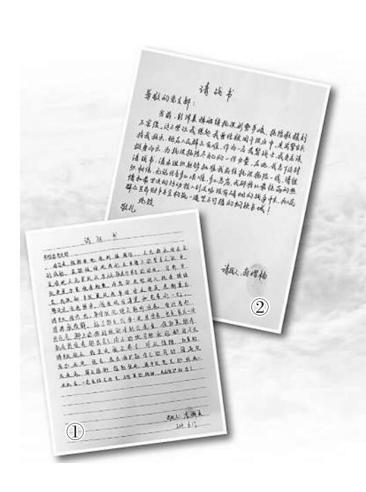 李瑞昊的请战书。图②:翁熠楠的请战书。