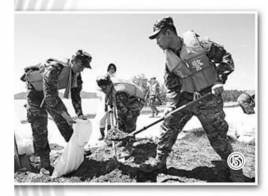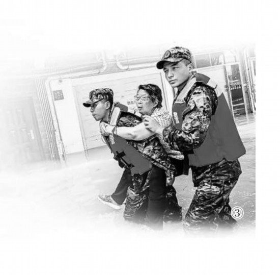武警江西总队九江支队官兵在抗洪一线执行任务。