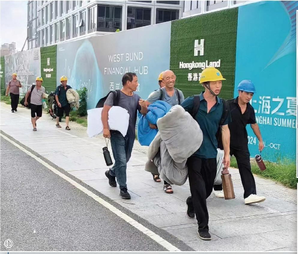筑工人昨天上午从西岸金融城工地赶往周边安置点。(采访对象供图) 制图:张继