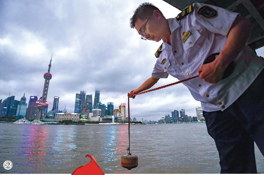 工作人员在黄浦水文站追踪潮汛信息。制图:张继