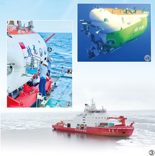 图②:大洋86航次任务期间,潜水器布放前,技术人员拆除“蛟龙”号限位销和潜水器系固。自然资源部国家深海基地管理中心供图 图③:执行中国第四十次南极考察任务的“雪龙2”号在阿蒙森海开展大洋考察作业。新华社发 前不久,我国自主设计建造的首艘大洋钻探船“梦想”号在广东广州正式入列。这标志着我国在深海进入、深海探测、深海开发上迈出了重要一步,是建设海洋强国、科技强国取得的又一重大成果。 逐梦深蓝,科技助力。我国海洋科技创新不断取得新突破,持续推进深海事业迈上新台阶。 深度不断拓展 从下潜600米到挺进万米深渊,一系列关键技术大显身手 “深海里有许多发光的浮游生物,它们仿佛是夜空中的流星,出现的时间虽然短暂,却五彩斑斓,令人叹为观止。”提起这段经历,蔡嘉慧难掩兴奋。 蔡嘉慧是新加坡国立大学的一名海洋科学家,从事多金属结核矿区大型底栖生物的生态研究。今年8月,她参加了我国自然资源部组织的2024年西太平洋国际航次科考任务,跟随“蛟龙”号载人潜水器潜入海底。 执行科考任务时,“蛟龙”号在海底随走随停,蔡嘉慧和中方潜航员默契配合,记录透过舷窗观察到的海底生物,并提出采样目标建议。“海底海山的生物多样性非常丰富,这次终于能在水下亲眼观察深海海绵群和珊瑚林,受到的震撼远超阅读文献或者观看纪录片。”蔡嘉慧说。 在2024年西太平洋国际航次科考中,我国首次面向全球开放“蛟龙”号载人潜水器,中外科学家一同下潜采样。作为我国自主设计、自主集成的首台7000米级大深度载人潜水器,“蛟龙”号自2009年首次下潜以来,已完成317次下潜,累计搭载900余人次下潜,为我国乃至全球深海探测提供了有力支撑。 2020年11月10日,由我国自主研制的全海深载人潜水器“奋斗者”号,完成万米级海试,首次探底马里亚纳海沟“挑战者深渊”,使我国成为世界上第二个实现万米载人深潜的国家。截至目前,“奋斗者”号累计下潜329次,其中万米下潜25次,万米深潜次数和人数均居世界首位,标志着我国在全海深载人深潜领域达到世界领先水平。 深海深渊,一度被认为是海洋科考的“禁区”。但越是漆黑、高压、低温和地质运动活跃的“深海荒漠”研究,越能成为海洋研究的前沿领域。曾任“蛟龙”号载人潜水器主任设计师、“奋斗者”号载人潜水器总设计师的叶聪感慨:“载人深潜让人更加体会到技术自主可控、自立自强的重要。中国人要把深海关键技术牢牢掌握在自己手中。” 潜入万米海底,要攻克的首道难关就是巨大的水压。 马里亚纳海沟1万米深处,水压接近1100个大气压,相当于2000头非洲象踩在一个人的背上。“奋斗者”号如何做到不惧高压极端环境,在万米海底自由行走?其关键就在于载人舱。 以往使用的材料都已不能达标,需要研制一种高强度、高韧性、可焊接的钛合金材料。中国科学院金属研究所研究员、全海深载人潜水器载人舱项目负责人杨锐说:“国际上没有制造先例,唯一的办法就是我们自己造。” 于是,中国科学院金属研究所团队经过调研论证、研究实验,攻克了载人舱材料、成型、焊接等一系列技术难关。“我们独创的新型钛合金材料成功满足了载人舱材料所需的强度、韧性和可焊性等要求。”杨锐说。 突破光纤缆控技术,采取抗低温设计、研制固体浮力材料……从下潜600米到挺进万米深渊,涉及材料科学、高精度制造、导航定位和数据传输等领域,我国科研人员取得的一系列技术突破,不仅推动我国深海探测能力迈上新台阶,也为深海科学研究、资源开发和国际合作奠定了坚实基础。 精度持续提升 分辨率、位置精度令人惊叹,深海探测日益精密化、智能化 科学基础设施建设是助推深海大洋探测的重中之重,考察站是开展极地科考的基础支撑平台。以我国今年新建成的南极秦岭站为例,其研制建造的精细程度令人惊叹。 “秦岭站建设采用装配式建设方式,所有建筑设施均在国内完成加工定制,现场只需按要求安装建筑模块。”中国第四十次南极考察队新站队队长王哲超说,这种精细制造,减少了大量现场加工量,显示出严酷环境中整体建筑高度集成、质量可靠、施工迅速、绿色环保的优势。 对设备配置、建设材料的要求同样精益求精。秦岭站采用轻质高强的建筑材料,能够抵御零下60摄氏度的超低温和海岸环境的强腐蚀,清洁能源占比也超过60%。 中国第四十次南极考察中,国产极地特种载具“雪豹”2驰骋冰雪,不惧严寒,尽显身手。 这种新型极地特种载具能行驶于南极内陆硬雪、软雪、海冰、坚冰与砂石路面等各类复杂地形,同时可以根据考察实时需求,改装为站区快速运输、陆空协同指挥、紧急医疗救援等模块化方舱,标志着我国南极考察向精密化、智能化转型发展。 数千米深的海水阻隔了电磁波的远距离传播,如何实现水下长距离通信与数据传输? 依靠水声通信技术,“蛟龙”号实现“千里传音”。十年磨一剑,科研人员研发了水声通信系统,通过优化信号调制和抗干扰算法,实现深海环境中稳定的数据传输,通信距离超过10公里。该系统使用自适应纠错技术,提高了数据传输精度,确保在复杂水文条件下信息传输的完整性。 深海一片漆黑,地形环境高度复杂,“奋斗者”号要避免“触礁”风险,控制系统的精准指挥尤其关键。为此,中国科学院沈阳自动化研