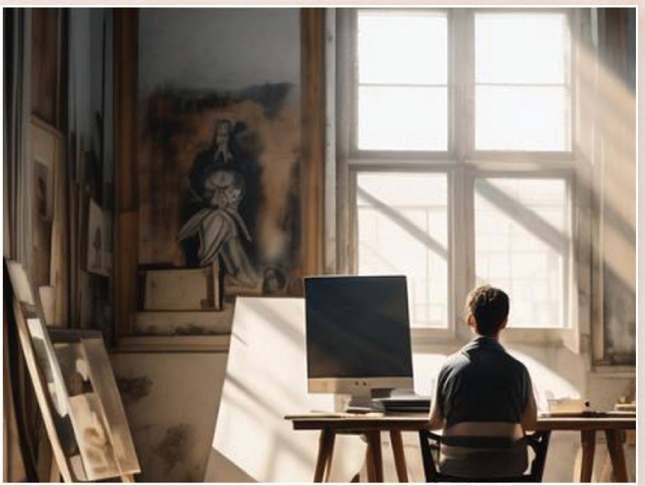 ![]() 画家在电脑前进行创作。(AI生图) 制图:张继