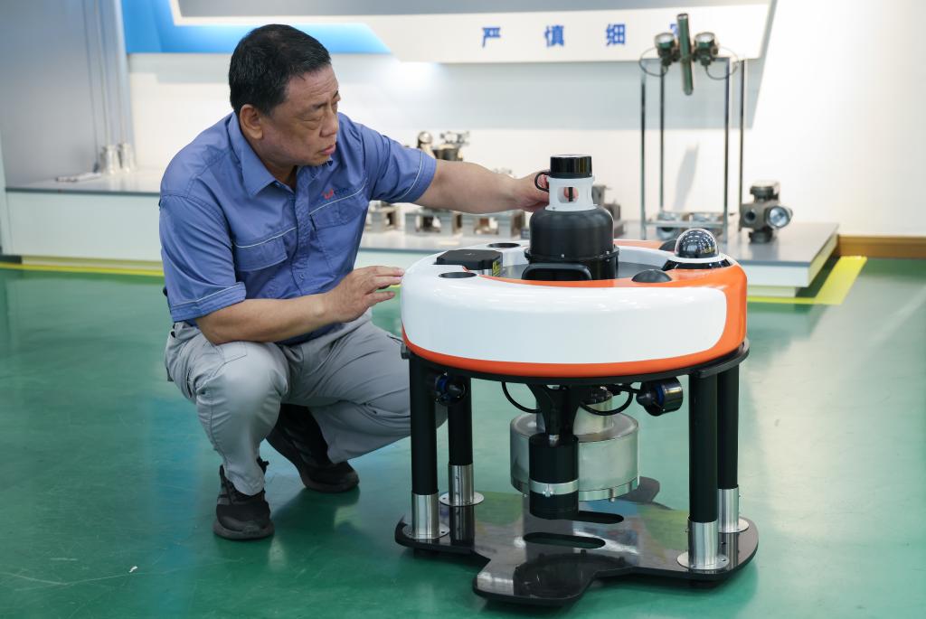 4月24日,乔素凯在大亚湾核电站内的技能中心测试光枪机器人。(受访者供图)