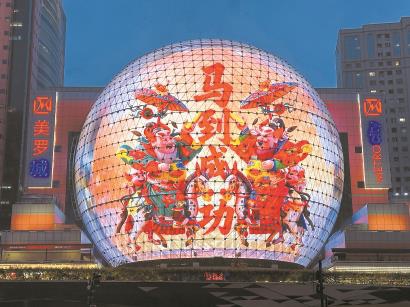 展览期间,美罗城标志性球形投屏装置也来参与互动,专为本次活动设计的数字年画动漫光彩夺目。