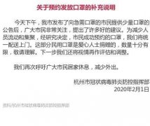 [热点] 杭州将免费发放口罩:限制领取数量,统一配送上门 日期:2020-02-02 16:04:45 点击:150 好评:0