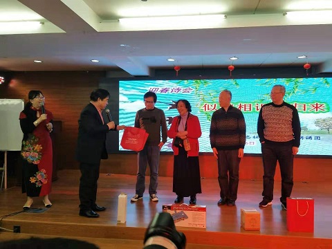 还有不少诗社成员朗诵了原创新诗《暖冬》、《旗袍》、《一封家书》、《我是一个幸福的人》、《路边的野花》、《雪花、红叶》、《迎春花》等。