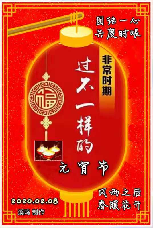 ![]() 不经意间 春节已经过半 元宵如期而至 凶残的瘟疫 驱散了以往的生气 恐慌的心理 取代了年节的欢喜 连日的闭关 体会着“度日如年”的含义 延续的假期 平添了多少春寒的凉意 郁闷徒然无用 牢骚无济于事 何须恐惧 只要把门户紧闭 也别大意 还需将口罩戴起 “守土有责” 是社会责任所在 “贵在坚持” 更是善待亲友和自己 心中点亮科学的花灯 用明月的纯洁划破病毒的阴翳 拨开云雾 来日便是春光满地 特殊的庚子元宵,祝你节日安康! ![]() |