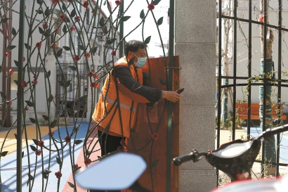 ![]() 志愿者要负责小区公共部位每天的消毒工作。 ![]() 门卫室门口贴着党员志愿者值班表。 ![]() 有了党员志愿者组成的防疫小队,老旧小区的防控有了保障。 ![]() 夜间进出居民减少,拉一根彩带系上铃铛,及时提醒检查。 ![]() “匠人匠心”服务队的队长俞国强搬来木板封闭小区边门。 ![]() 夜深了,志愿者依然守护着家园。 ![]() 每天爬楼,给居家隔离的居民送菜、送快递,也是志愿者的工作之一。 ![]() 党员志愿者冲锋在前,居民送来了点心和口罩慰问。 ![]() 简易消毒工具在疫情初期发挥不小作用。 ![]()