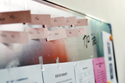居委会小黑板上,居家隔离人员解除隔离的期限一目了然。
