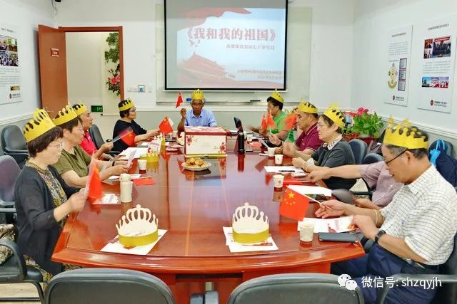 2020年9月26日,上海市知识青年历史文化研究会假座佰瑞福公司会议室,召开了《我和我的祖国》70周岁知青会员迎国庆贺生日座谈会,10名1950年出生的知青会员和其他会员一起出席了会议。 会议开始前,10名会员头戴金色的皇冠、舞动手中的五星红旗,饱含深情地