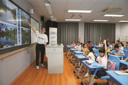在徐汇区汇师小学教学点,孩子们在学习环保知识相关课程。 本报记者 李茂君 摄