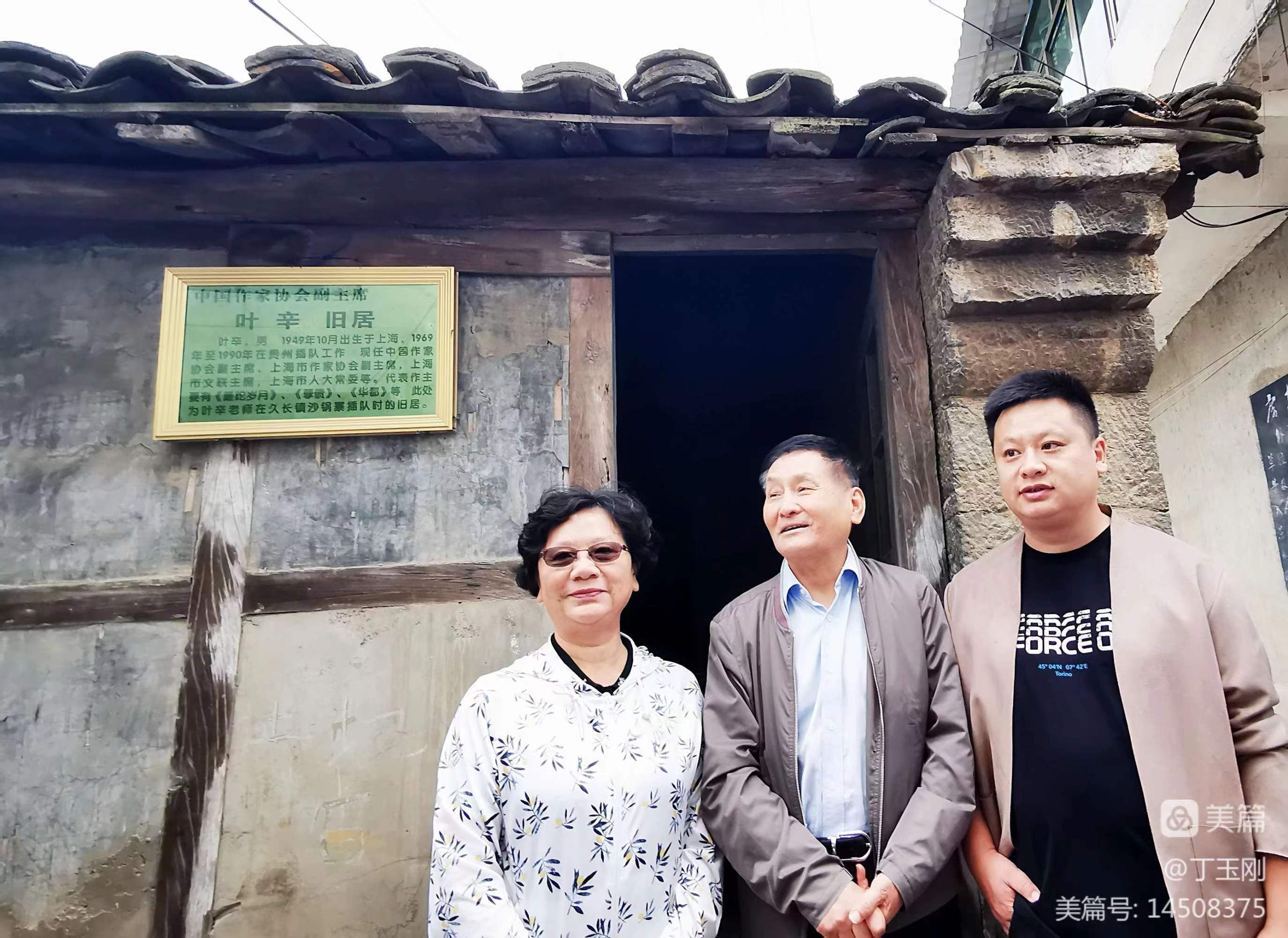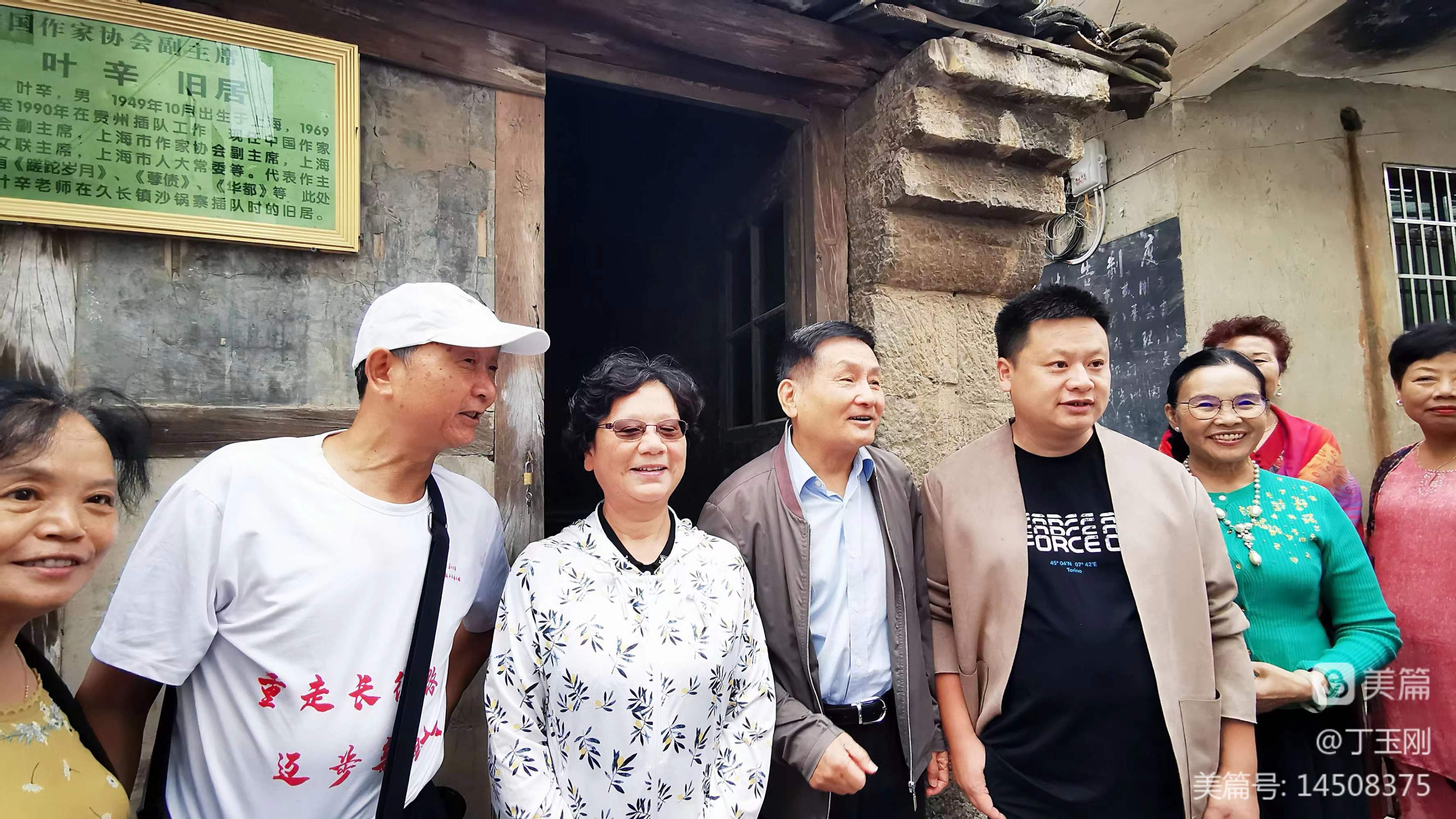 叶幸夫妇携儿子叶甜在旧居前与大家合影留念。