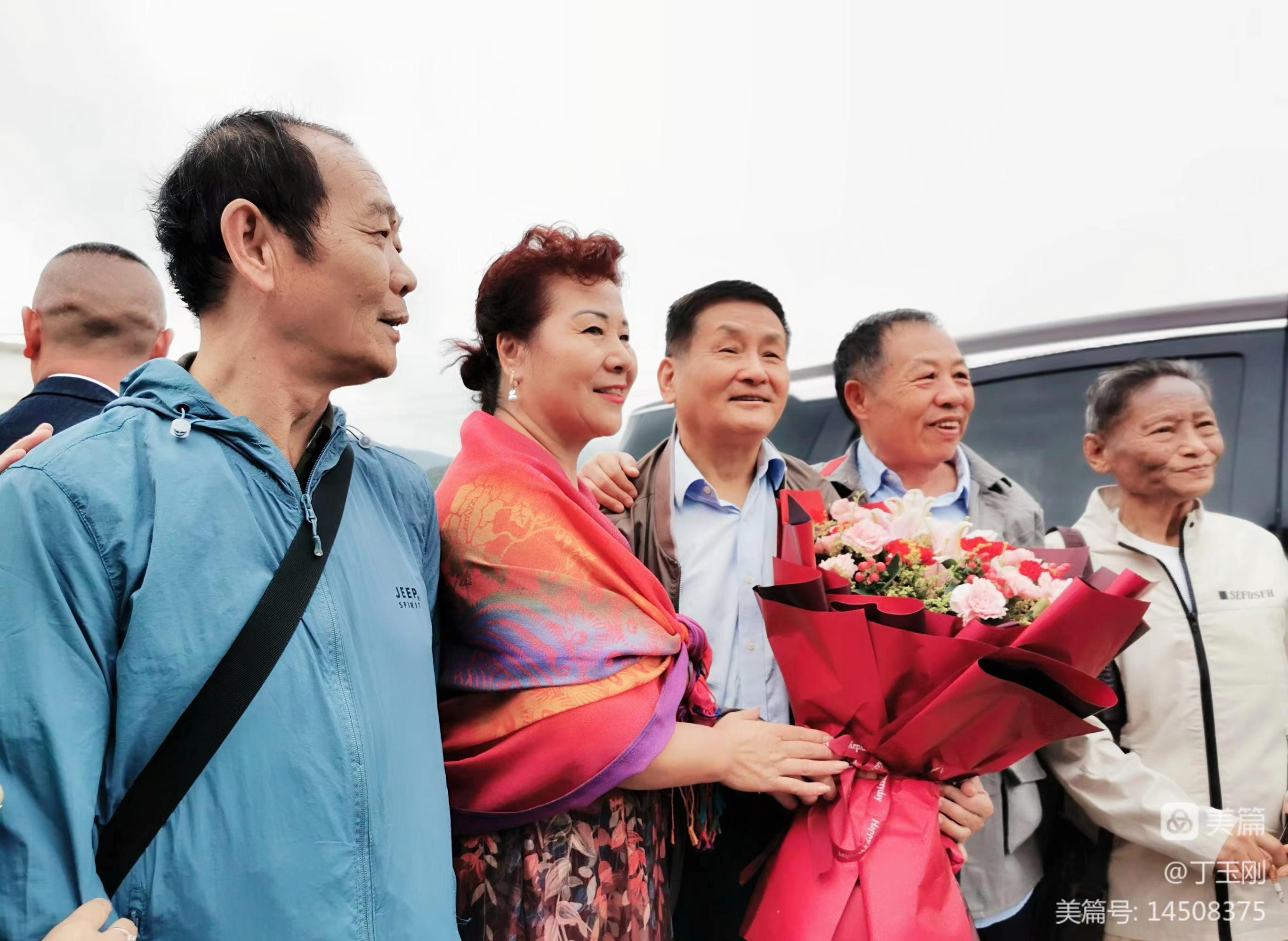 叶辛手捧贵州知青敬献的鲜花,与前来欢迎的贵州知青共叙知青情怀。