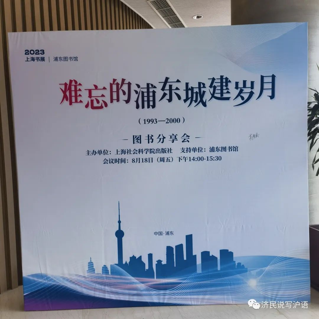 现在开各种发布会,大多有一个环节,叫圆桌论坛。就是在台上放几把椅子,请几位嘉宾上台坐着,有一位主持人提问,由嘉宾依次回答。最后请每位嘉宾用一句话作总结。我参加过许多会,见过不少圆桌论坛。想不到的是,2023书展,自己也当了一次嘉宾。 8月18日下午,《难忘的浦东城建(1993-2000)》图书分享会在2023年上海书展浦东分会场、浦东图书馆第2报告厅举行。会议主办单位为上海社会科学院出版社,支持单位为浦东图书馆。该书编委会邀我当发布会的圆桌论坛嘉宾。我欣然允命。