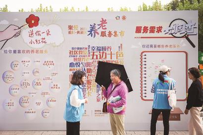 10月22日,“2023年黄浦区敬老节主题活动”在复兴公园举行。社区居家养老、健康义诊、小修小补等46个便民服务摊位吸引不少老年人驻足。本报记者 海沙尔 摄