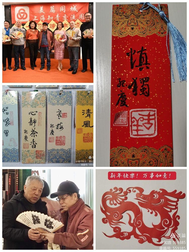 书法纂刻剪纸大师鲁纪庆老师为到会的每个美友制作了一张书签小礼品。(右上角“慎独”是我拿到的书签)
