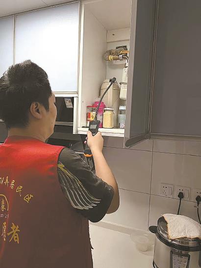 场中路2601弄居民区志愿者上门为独居、高龄老人检查家中用水用气用电安全。 均受访者供图