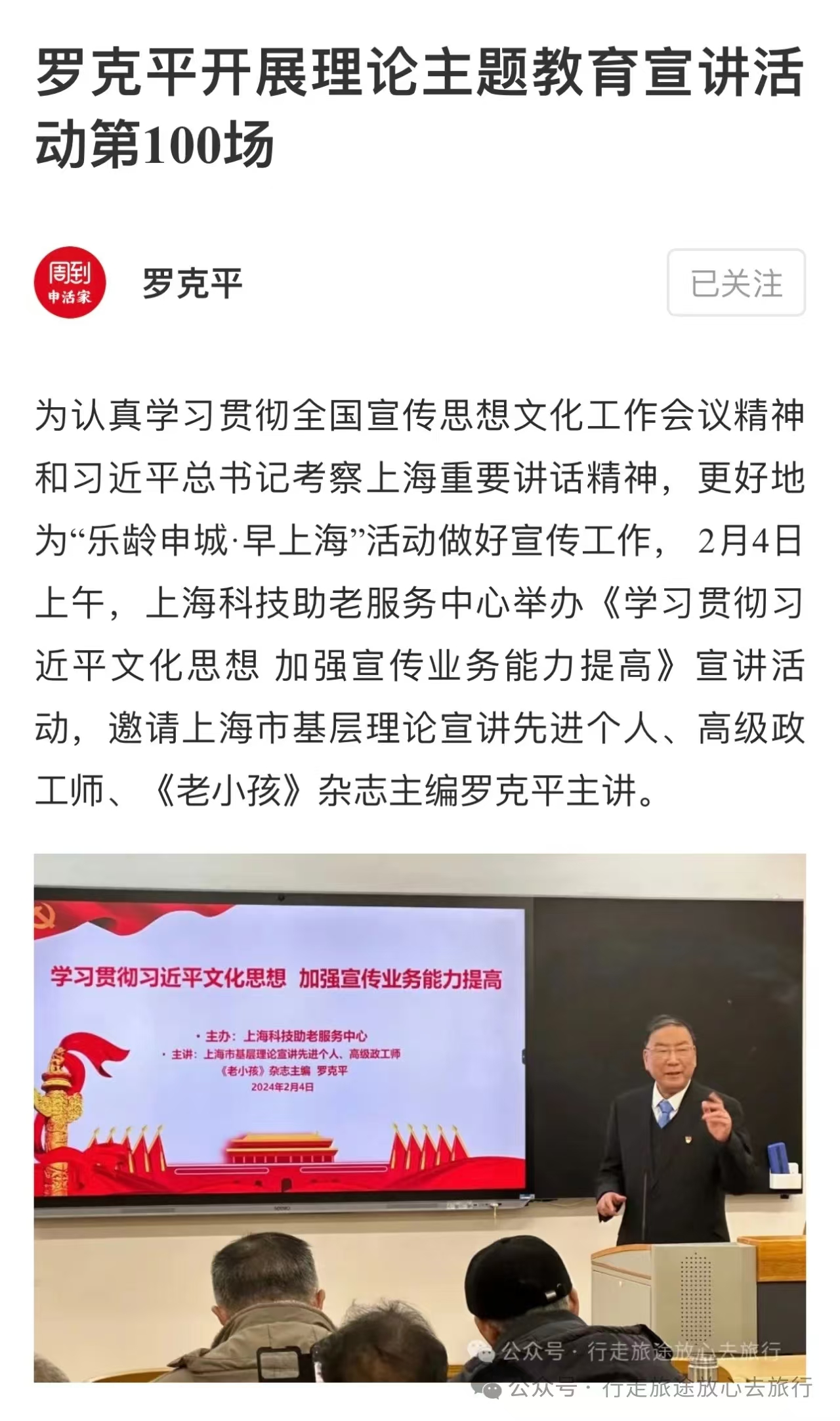 去年的今天(2023年8月26日),我在《新闻晨报周到上海》APP刊登了我的第一篇文章《学习工匠事迹,宣讲工匠事迹!上海市退休职工宣讲团讲师参观上海工匠馆》。这是我在担任早上海老记团 志愿者后采访刊登的第一篇文章。 早上海老记团是在上海市委老干部局和