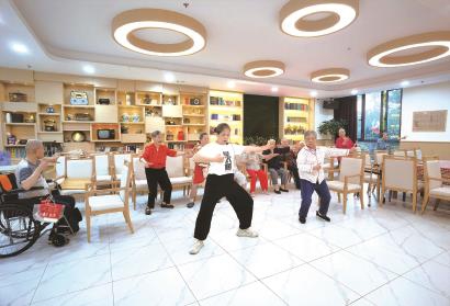 馨逸养护院对老年人进行“星太极认知障碍干预”训练。