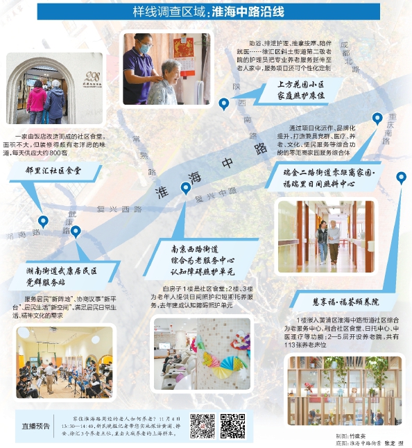 上海,是全国最早进入人口老龄化且老龄化程度最高的城市。截至2023年底,全市户籍60岁以上老年人口568.05万人,占户籍总人口的37.4%。如何提升老人的生活质量,是上海建设人民城市一道至关重要的“必答题”。 有人说,最好的城市养老服务,就是给予老人们足够多元化的选择,让他们根据自身情况挑选最合适的方式乐享银龄生活。上海老人的养老选择有多丰富?在习近平总书记提出人民城市理念五周年之际,记者选择有着124年历史的淮海路进行“样线调查”。行走在这条著名的街道上,亲眼见证上海老龄事业的发展成果,亲身体验为上海老人“量身定制”的幸福养老生活。 在淮海路著名地标武康大楼所在的社区,老人们成立了一个乐队,要在音乐与歌声中优雅地慢慢老去;在湖南路上的社区食堂,掌管40多把钥匙的送餐员成了附近老人最信赖的人;在南京西路街道综合为老服务中心认知障碍照护专区,社工和护理员为了哄老人乖乖吃饭,轮流扮演老人的老同事……从一条街看到的大城养老缩影,不只是宏大叙事,更有着温情与感动。 样线调查区域:淮海中路沿线 邻里汇社区食堂 一家由饭店改造而成的社区食堂,面积不大,但装修得颇有老洋房的味道,每天供应大约800客 上方花园小区家庭照护床位 助浴、排泄护理、推拿按摩、陪伴就医……徐汇区斜土街道第二敬老院的护理员把专业养老服务延伸至老人家中,服务项目还可个性化定制 湖南街道武康居民区党群服务站 服务居民“新阵地”、协商议事“新平台”、居民生活“新空间”,满足居民日常生活、精神文化的需求 南京西路街道综合为老服务中心认知障碍照护单元 白房子1楼是社区食堂;2楼、3楼为老年人提供日间照护和短期托养服务,去年建成认知障碍照护单元 瑞金二路街道零距离家园·福瑞里日间照料中心 通过项目化运作、品牌化提升,打造兼具党群、医疗、养老、文化、便民服务等综合功能的零距离家园服务综合体 慧享福·福荟颐养院 1楼嵌入黄浦区淮海中路街道社区综合为老服务中心,融合社区食堂、日托中心、中医理疗等功能;2—5层开设养老院,共有113张养老床位 直播预告 家住淮海路周边的老人如何养老?11月4日13∶30—14∶40,新民晚报记者带您实地探访黄浦、静安、徐汇3个养老点位,直击大城养老的上海样本。 责任编辑:日升 (责任编辑:日升) |